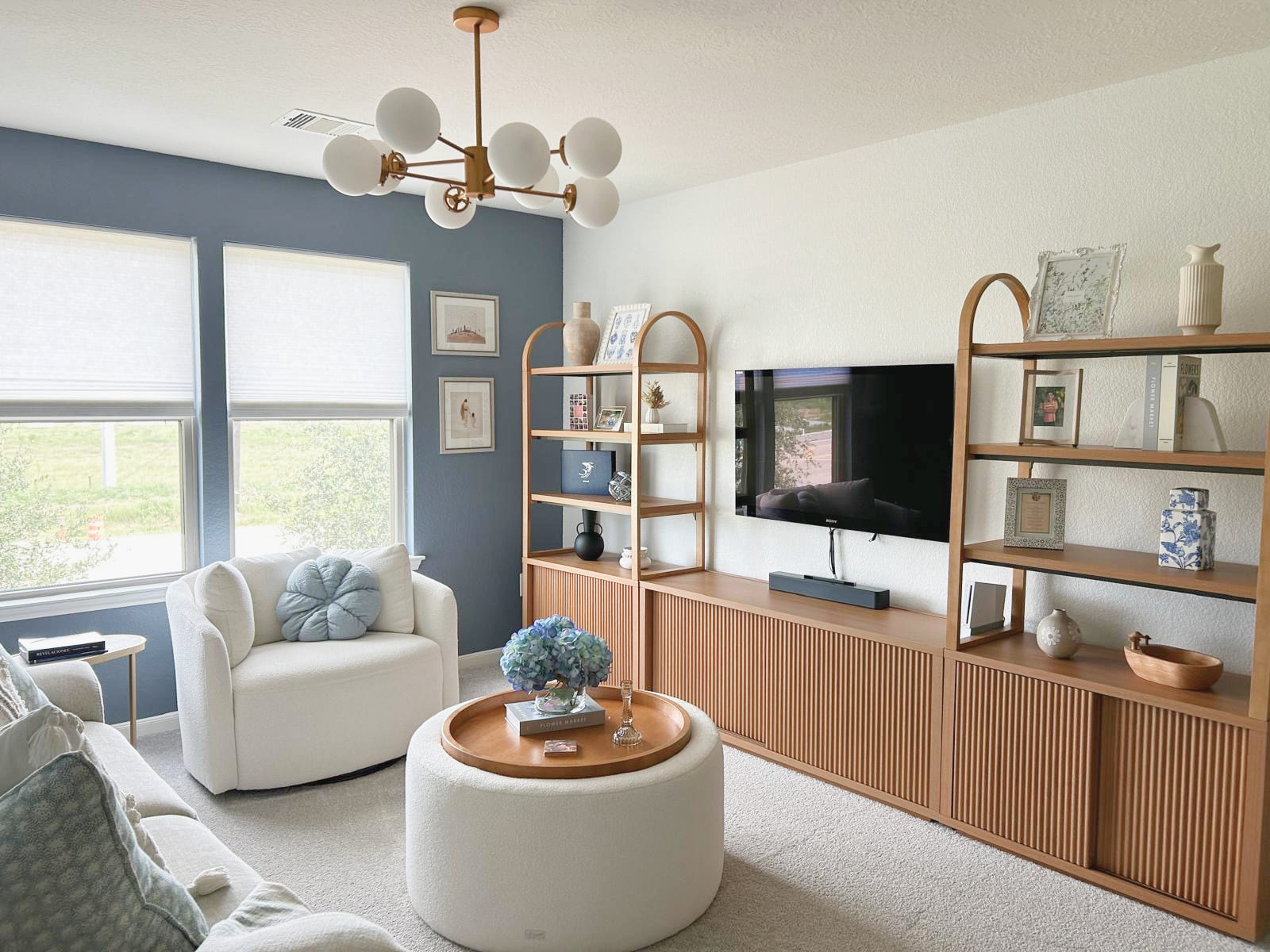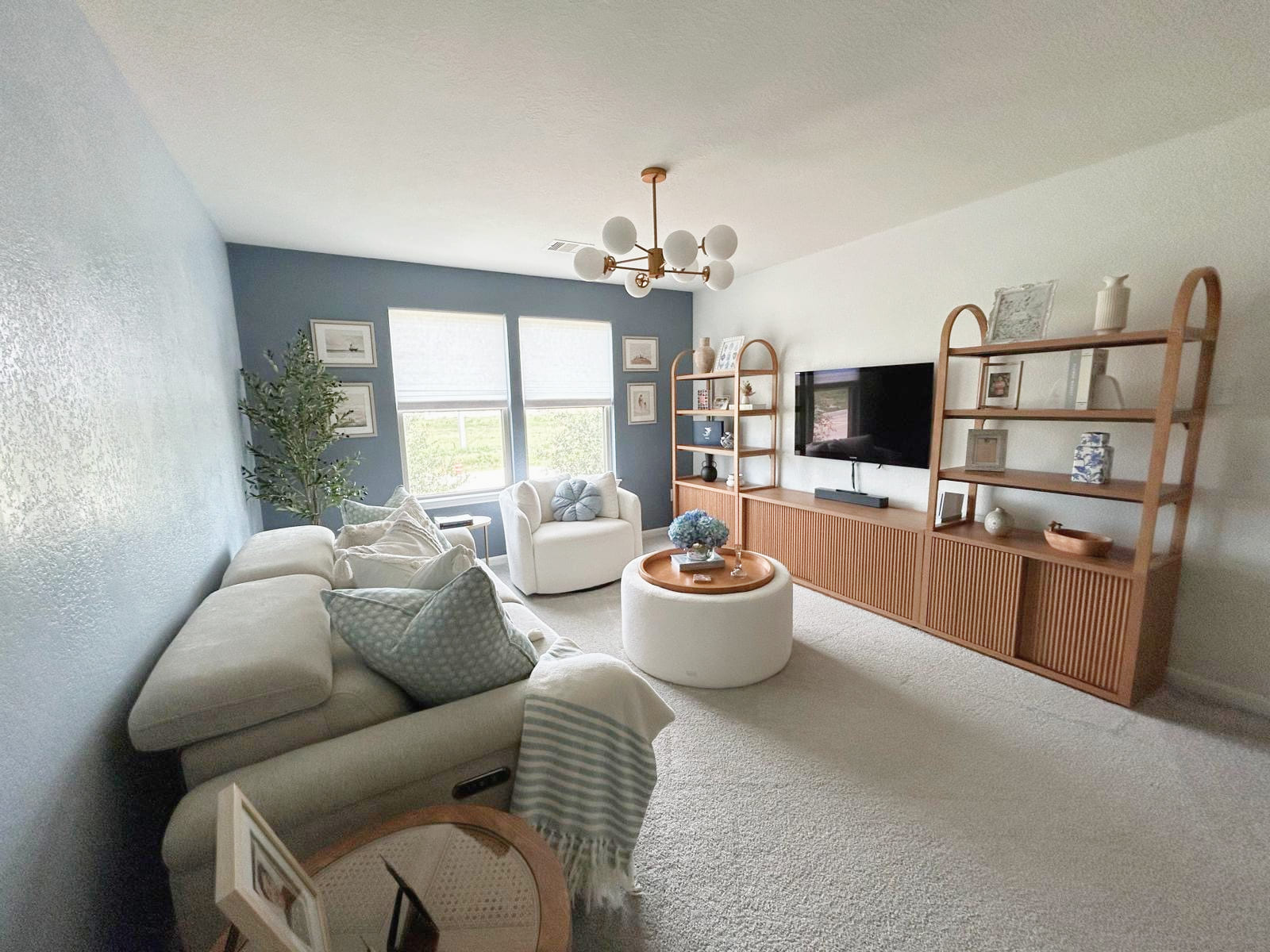 Professionally styled a four-bedroom, two-bathroom home with an emphasis on comfort, style, and family-friendly living. The living room serves as a relaxing central space, while the bedrooms are functional, stylish, and cohesive with the overall design. Thoughtful use of color, texture, and furniture creates a warm, inviting, and balanced home.