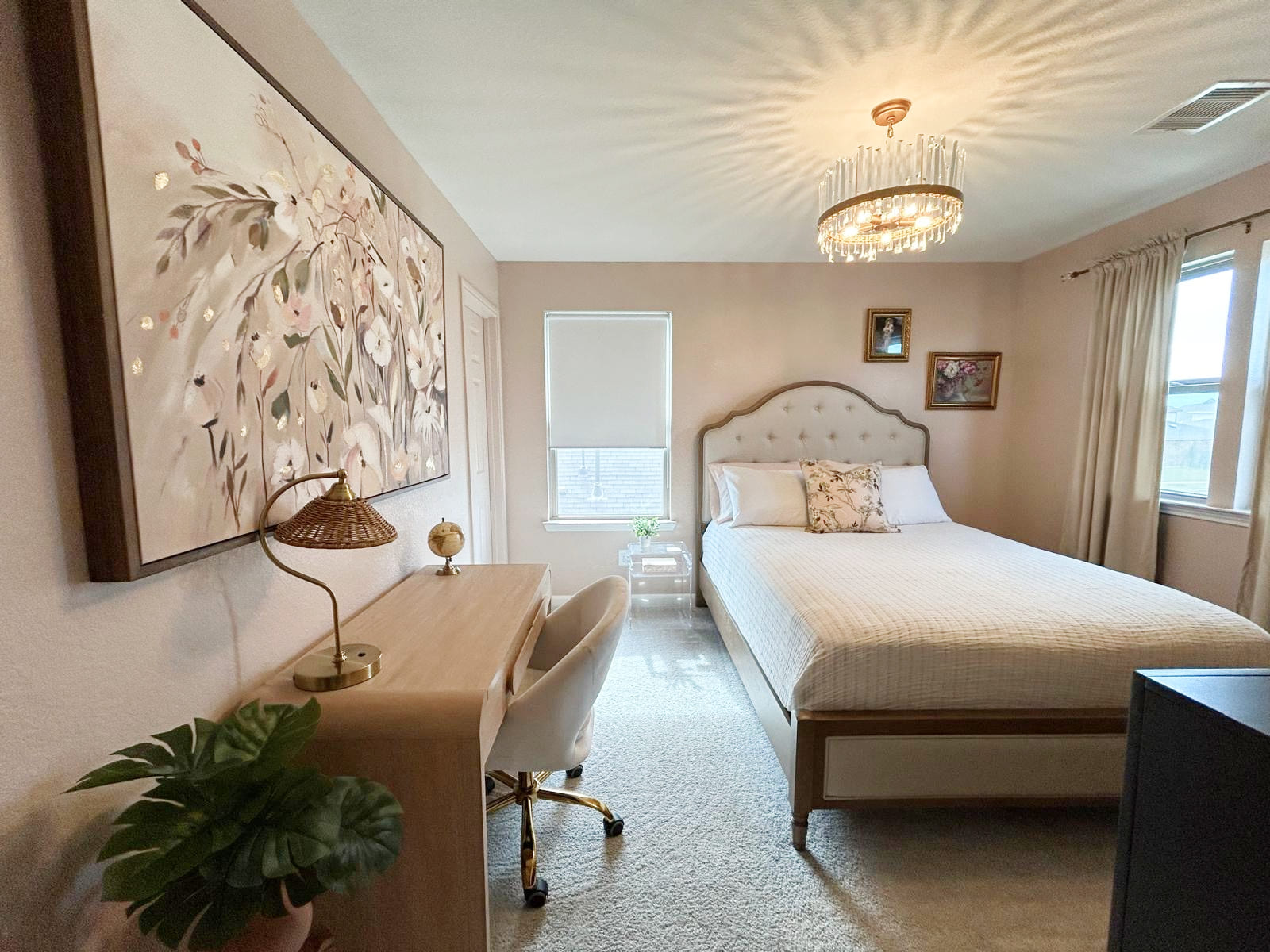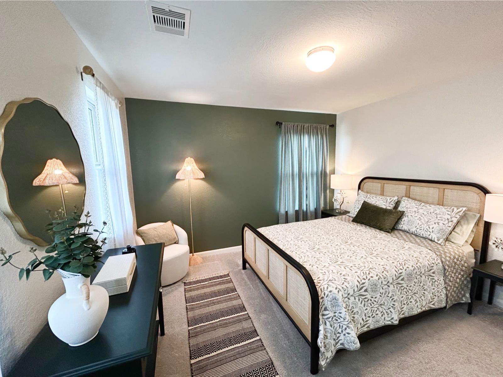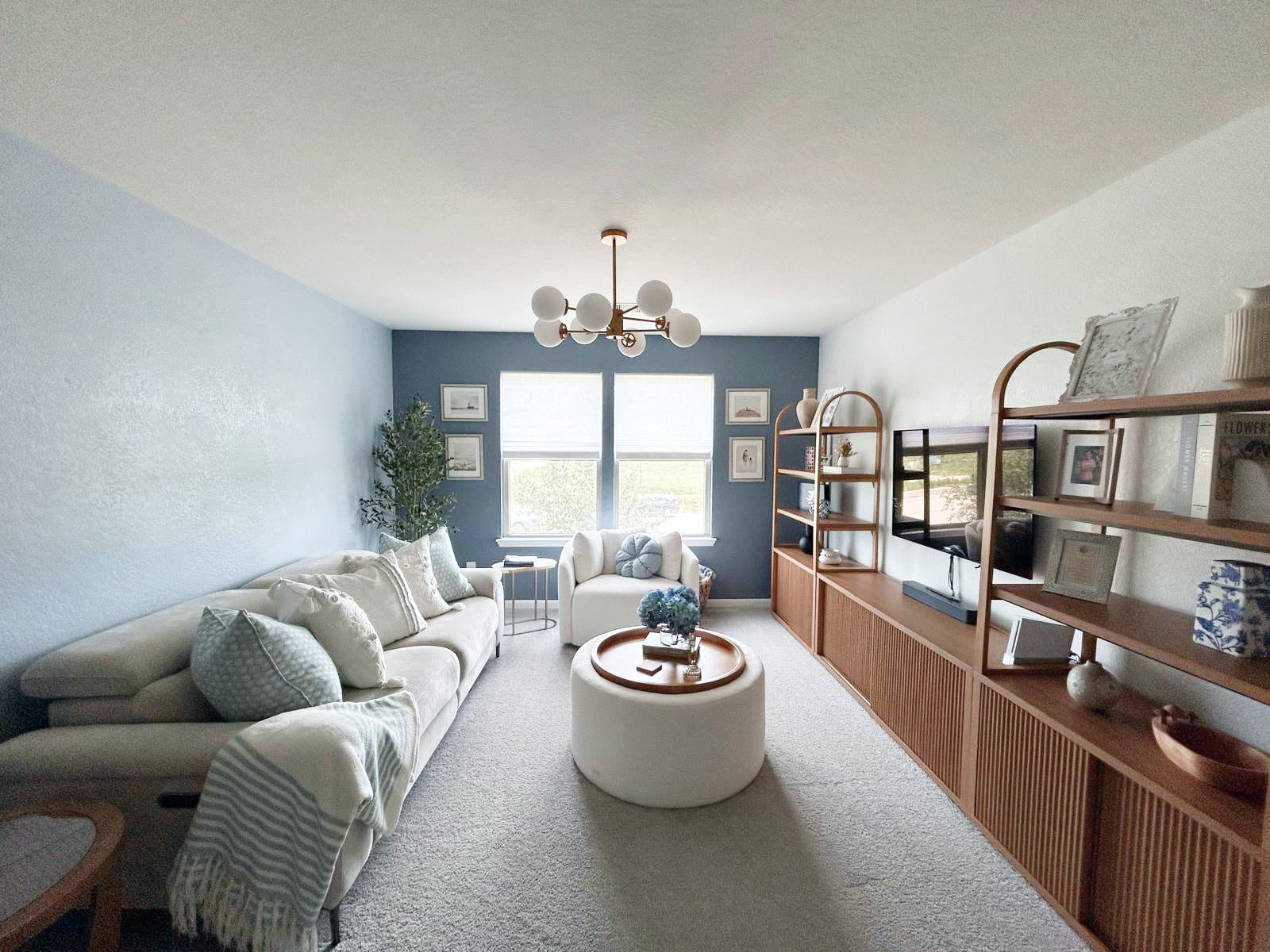 Professionally styled a four-bedroom, two-bathroom home with an emphasis on comfort, style, and family-friendly living. The living room serves as a relaxing central space, while the bedrooms are functional, stylish, and cohesive with the overall design. Thoughtful use of color, texture, and furniture creates a warm, inviting, and balanced home.